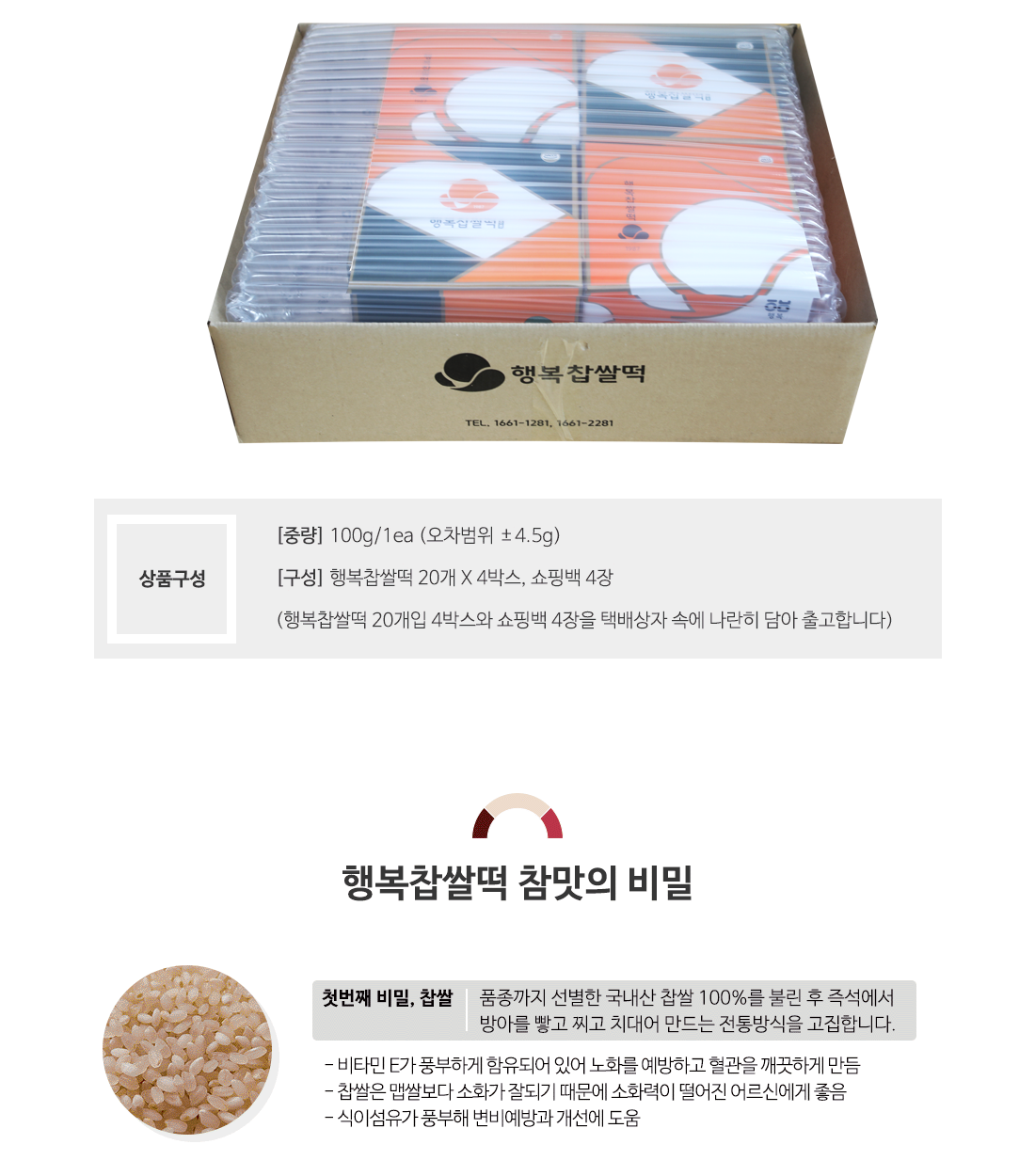 찹쌀떡 20구 4상자 쇼핑백 4장 동봉, 무료배송